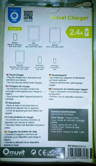 🔌⚡ Cargador Lightning 2.4A – Carga Rápida iPhone/iPad (1,2m) 📦 Travel Charger con conector Lightning 🔋 Potencia 2.4A – carga rápida, ideal también para iPad 📏 Cable de 1,2 metros 📱 Compatible con iPhone, iPad y iPod con conector Lightning 🆕 Nuevo en su caja ¿Necesitas un cargador extra para casa, oficina o viajes? ✈️ Este cargador ofrece carga rápida y estable, perfecto para no quedarte sin batería cuando más lo necesitas. ✅ Ideal como segundo cargador ✅ Cable largo y resistente ✅ Perfecto para viaje 💬 Entrega en mano o envío por Wallapop. 💰 Buen precio – ¡pregunta sin compromiso!