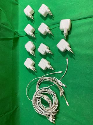 Pack de 10 Cargadores Originales para iPad Apple, con Cables Apple (Usados, en buen estado). - Modelo del Cargador:** A1401 - Capacidad de Carga:** 12W, proporcionando carga rápida para tus dispositivos iPad y iPhone - Incluye: 10 cargadores originales para iPad Apple, cada uno con su cable correspondiente. - Estado: Todos funcionan correctamente. Aprovecha esta oportunidad para obtener cargadores de calidad a un precio de risa. ¡Contáctame si estás interesado! ref: J271