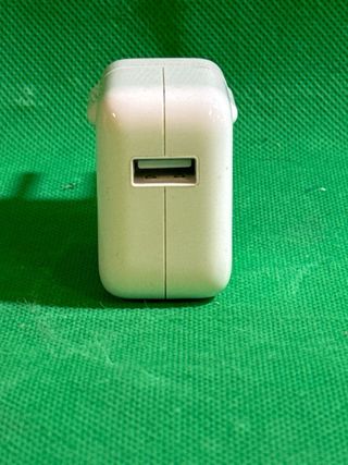 Adaptador de corriente USB de 12W de Apple, perfecto para cargar tu iPad u otros dispositivos. Es un cargador blanco, en buen estado. - Funciona a la perfección. - Modelo de 12W. - Incluye un adaptador de corriente USB.