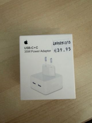 14-U582207 El cargador Apple Dual USB-C de 35W permite cargar dos dispositivos a la vez con tecnología Power Delivery, ideal para iPhone, iPad, MacBook Air y más. *a estrenar* 3 años de garantía. Disponible sólo para envío mediante wallapop o compra directa en nuestra web realcash. es. Enviamos a toda España excepto Canarias, Ceuta y Melilla.