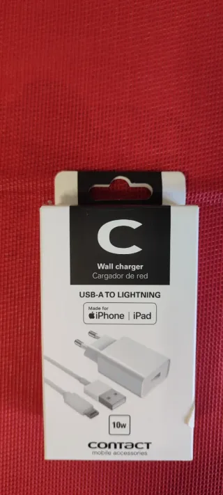 Hola Vendo Cargador de pared USB-A a Lightning para iPhone y iPad nuevo en su caja sin uso Características - Potencia de 10W. - Incluye cable Lightning Para más información zona Maragall Barcelona entregó en mano