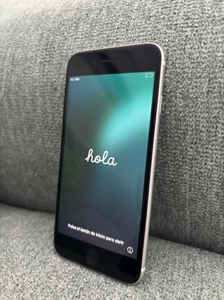 Hola! Vendo teléfono móvile Apple iPhone SE. Es blanco y plateado. En buen estado. - Incluye 4 fundas, una de ellas con cordón. - Incluye cargador con cable un poco pelado por una pequeña zona.
