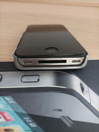 Teléfono iPhone 4 en color negro. Está en buenas condiciones, aunque presenta algunas señales de uso. No sé si funciona, sin cargador. Con su caja. - Modelo A4 - Incluye funda protectora