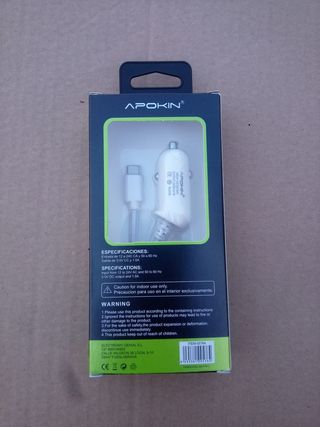 Apokin. Car Charger out put 1A. Cargador mechero USB. Entrada de 12 a 24C CA y 50 a 60Hz. Salida de 5.0V CC y 1.0A