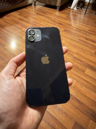 Teléfono móvil iPhone 12 con 128GB de almacenamiento. - Color negro. - Pantalla de 6.1 pulgadas. -Regalo funda magsafe original En las fotos se ven claramente los desperfectos estéticos en el marco. La pantalla y cámaras están perfectos. No incluye cargador (se rompió con los años). SOLO ACEPTO DINERO!!