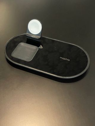 Base de carga inalámbrica Mophie con diseño elegante y funcional. - Carga hasta tres dispositivos simultáneamente. - Superficie de carga inalámbrica. - Soporte integrado para Apple Watch. - Incluye adaptador de corriente. - Funciona con iPhone 13 Pro y anteriores, Apple Watch 7 y anteriores, AirPods Pro. - Muy poco uso. - En su caja original. OPORTUNIDAD: Haz un lote. Cómprame varios productos y paga un solo envío.