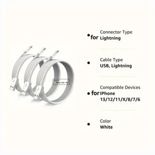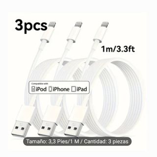 3 Cables lightning de datos de carga USB A certificado MFi original adecuado para iPhone 13 12 11 Mini Pro XR Xs Max X SE 8 7 6 Plus iPad iPod AirPods - Blanco ✅ También hacemos envíos a todo el país ✅