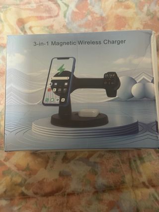 Cargador inalámbrico magnético 3 en 1. - Diseño elegante y funcional. - Carga simultánea de múltiples dispositivos. para iPhone 16 15 14 13 Pro Max Apple Watch 9 8 AirPods Pro carga rápida Tan solo se sacó de la caja para verificar su perfecto funcionamiento.