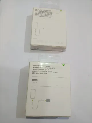 Cargadores nuevos de 20W (USB-C + cable Lightning) • Carga rápida y segura (20W, ideal para iPhone 8 en adelante) • Compatibles con todos los modelos de iPhone con conector Lightning • Producto completamente nuevo, sin usar Gran oportunidad para ahorrar y llevartelos a un precio muy asequible