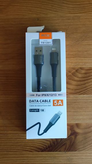 Cable de carga de 5A y de datos para iPhone 13, 12, X y IP8. Longitud 1 metro.
