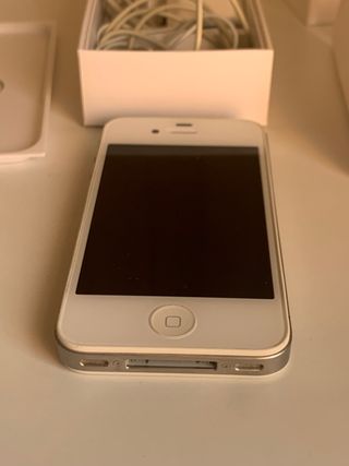 Iphone 4 con capacidad 8 GB. Color blanco en perfecto estado, no tiene ninguna marca ni arañazo. Con la caja original, auriculares y cargador original. Funciona perfectamente y carga correctamente. Para amantes de la retro de Apple y volver a sus origenes. Regalo funda protectora