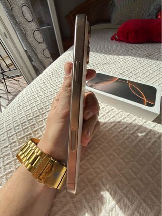 Se vende iPhone 16 Pro Max en color dorado con solo 5 meses de uso . Con seguro y garantía vigente . Se vende por cambio de teléfono . Está NUEVO . Con caja original y cargador original sin uso . Ni un rasguño . Gran oportunidad 😉