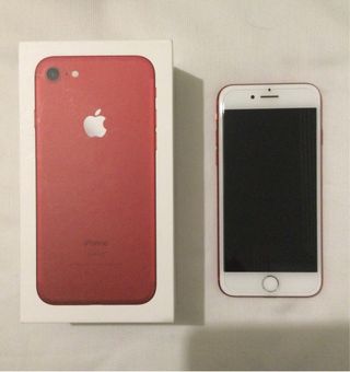 Apple Iphone 7 de 128GB modelo red (rojo). Teléfono muy bien cuidado, con cristal protector y funda. Se entrega en su caja original, sin cargador, sin cable y sin auriculares.