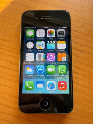 iPhone 4 en buenas condiciones. Se carga y funciona. IOS 7.1.2 La pantalla está en buenas condiciones porque se cambió en Apple y luego se le puso un protector de cristal para que no ocurriera lo mismo (aún lleva el protector de cristal) Conserva su caja original y no se incluye el cargador y los auriculares debido a su deterioro.