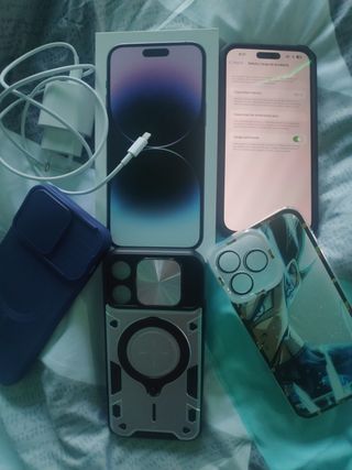 Iphone 14 Pro max de 128GB color morado bateria 87%,se entrega con 2 cargadores a USB-C , 2 cargadores de USB a Iphone y 1 Cargador inalambrico, se entrega con protector antiespia y otro sin usar y 2 protectores normales con protector de camara. Se incluye la caja y varias fundas @Realizamos envíos tanto por Wallapop como por fuera (más económicos dependiendo del peso) @❓Pregunta sin compromiso @info ✅WhatsApp 684350912