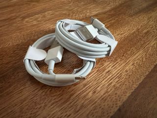 Un cargador de iPhone corto bastante usado pero está bien conservado