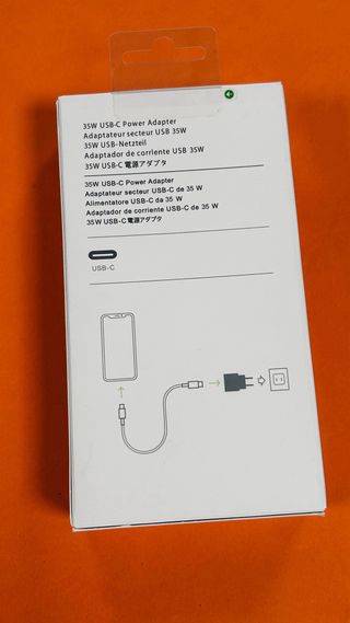 Adaptador de corriente USB-C de 35W con cable USB-C a C. - Incluye adaptador de corriente de 35W. - Incluye cable USB-C a C.