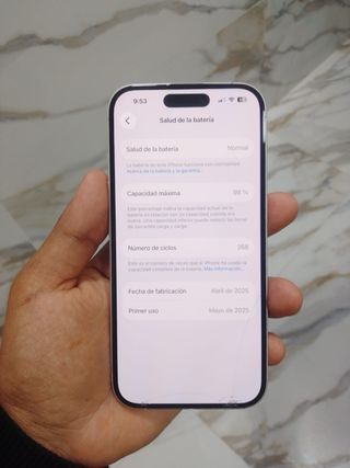 El precio mostrado es el de venta en nuestra tienda. El precio de este producto en nuestra página web puede ser diferente. Este artículo está disponible en nuestra tienda de Almería. apple iphone 15 pro max 256gb CC059_E427050_0 es un objeto que se ofrece en estado correcto. Todos nuestros productos cuentan con garantía de 3 años y un plazo de devolución de 14 días. Vida util bateria mayor del 80%: Si | Numero de sim: 2 (dual-sim) | Caja original: No | Sistema operativo: Ios | 3g: 5g | Memoria ram: 8 | Megapixels: 48 | Operador: Libre | Capacidad: 256 | Pulgadas: 6.7 | Cable cargador: No | Porcentaje de bateria: 85 | Marca:
