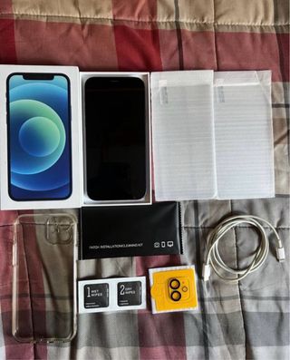 -Iphone 12 de color azul con 128GB de almacenamiento. -Funciona todo correctamente: botones laterales, Face ID, Apple Pay, cámaras... -Incluye caja original del Iphone, funda transparente, 2 cristales templados, cargador y protector de cámaras. -Preguntas sin compromiso.