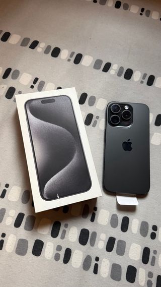 Teléfono móvil iPhone 15 Pro en color negro. Se entrega en su caja original. - Perfecto estado, muy cuidado. - Funciona todo perfectamente. - Salud bateria 85% - Se entrega con cargador - Dos fundas de regalo