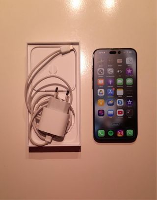 Teléfono móvil iPhone 14 Pro Max en color negro - se encuentra en perfecto estado sin golpes ni arañazos si entrega con cargador y fundas