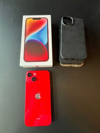 iPhone 14 rojo de 128GB: Detalles. 🔹84% de salud de batería 🔋 🔹 Sin ralladuras ni marcas ✨ 🔹 Todas las piezas originales 📱 🔹 iCloud operativo 👌🏽 Incluye. 🔸 Caja original 📦 🔸 Cargador original 🔌 🔸 Pincho para la SIM 📍 🔸 3 fundas en perfecto estado 🛡️ Envio rapido y seguro 🚚 Precio negociable 💸