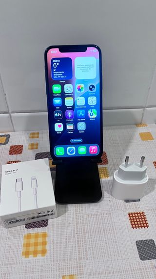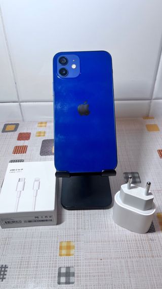 iPhone 12 en color azul con 64GB de almacenamiento. Bateria al 100% ver foto(9) esta como nuevo como se puede apreciar en las fotos. Lleva protecion de pantalla puesta todo funciona bien. Incluye lo que se ve en las fotos el cargador es de 20w carga rapida y cable carga USB C a Lightning ((Hago Envios))📦🚚📬