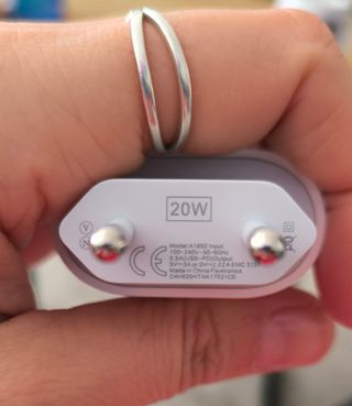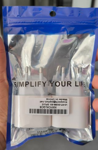 PACK 2 ENCHUFES CARGA 20 W MODELOS ANTERIORES DE IPHONE. NO USADO (abierto para foto). No lleva cable.