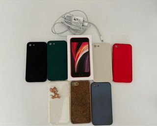 se vende iphone SE 2020 en perfecto funcionamiento. Tiene unas pequeñas marcas ( se ven en fotos) pero no afectan a su funcionamiento y con funda no se ven. se regala cargador y todas las fundas de la foto. En su caja original. un solo propietario. Puesto de fábrica. Lo vendo por comprar otro, pero funciona perfectamente