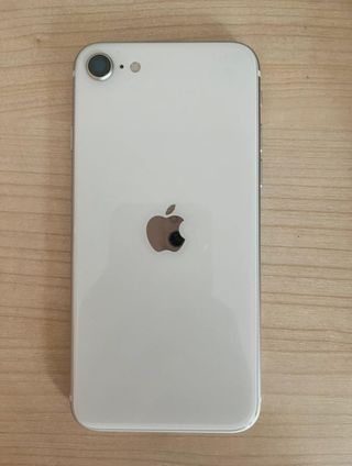 Teléfono móvil iPhone SE en color blanco. - Modelo de segunda generación. - Diseño compacto y ligero. - Pantalla impecable sin ningún rasguño - Salud de batería al 76% - Incluye cargador, dos protectores de pantalla (uno puesto y otro aparte) y 10 fundas de móvil.