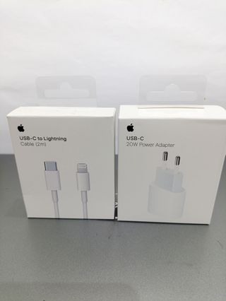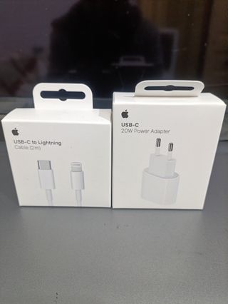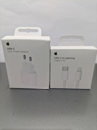 Se vende cable USB-C a Lightning de 2 metros y cargador de 20W de Apple. - Cable USB-C a Lightning (2m) - Adaptador de corriente USB-C de 20W