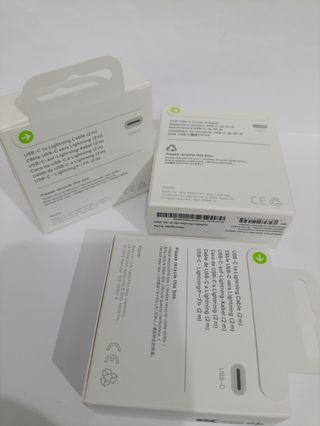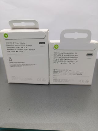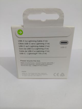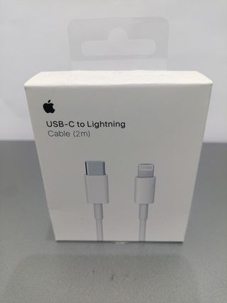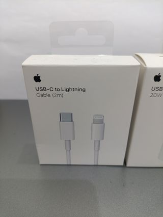 Se vende cable USB-C a Lightning de 2 metros y adaptador de corriente USB-C de 20W. TODO PRECINTADO - Cable USB-C a Lightning de 2 metros. - Adaptador de corriente USB-C de 20W.
