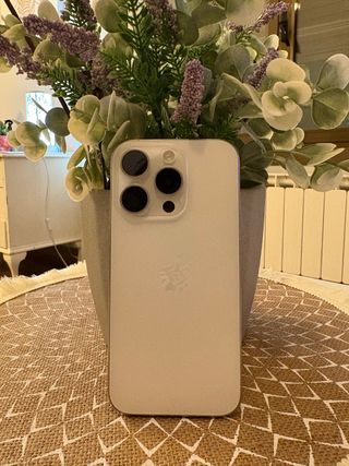 Teléfono móvil iPhone 15 Pro con acabado blanco. - Capacidad de almacenamiento de 128 GB. - Incluye caja y cargador + funda - Protector puesto - Siempre con funda y protector - Salud batería 84% como nuevo, funciona correctamente me he cambiado de dispositivo