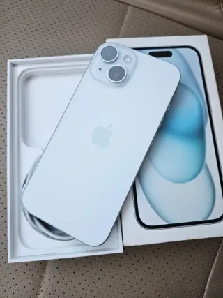 iPhone 15 con gran capacidad de almacenamiento y en excelente estado. - Capacidad de 128 GB. - Batería al 100%. - Incluye cargador original.