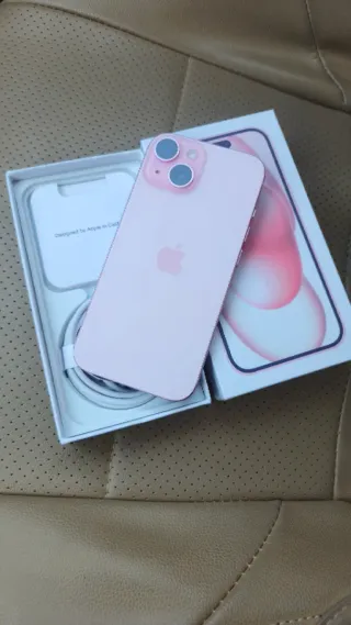 Teléfono móvil iPhone 15 en color rosa con una capacidad de almacenamiento de 256GB. Incluye cable de carga. Salud 87% con funda protector y cargador incluido contesto WhatsApp y llamadas precio no negociable