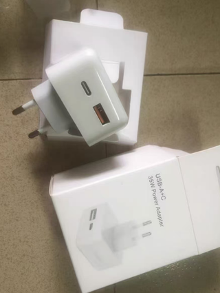 Cargador Apple 35W (Europeo) - NUEVO Y SELLADO Cargador original Apple de 35W con enchufe tipo europeo. Compatible con MacBook Air, iPhone, iPad y dispositivos USB-C. 100% nuevo sellado de fábrica, incluye caja original y certificación CE. Ideal para viajes en Europa o uso diario. Oportunidad única a precio inferior al de tienda.