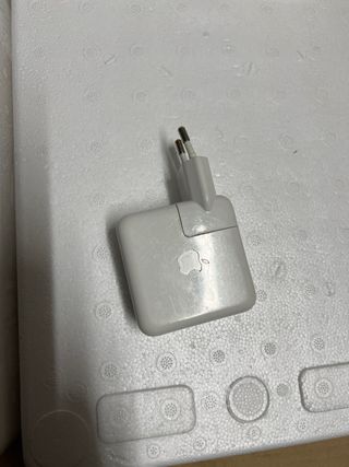 Vendo cargador Apple de 61W con conector USB-C. Está en excelentes condiciones y listo para usar. - Perfecto para cargar tu MacBook o iPad. - Diseño compacto y ligero. - Incluye el cable USB-C no vale 1 euro, acepto ofertas