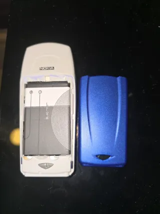 Teléfono móvil Nokia clásico en color azul y plata. Desconozco estado de bateria. Sin cargador