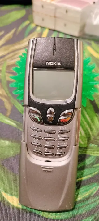 Teléfono móvil Nokia 8850 con acabado titanio y detalles en negro. Un clásico de la telefonía. - Diseño deslizante icónico. - Pantalla monocromática. - Botones de llamada y finalización de llamada. - Sin batería ni cargador. - Las fotos forman parte de la descripción.