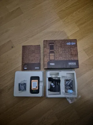Teléfono móvil Nokia 7390 en su caja original, sin estrenar. Un clásico de la telefonía móvil. - Incluye teléfono, batería, cargador y manuales. - Diseño elegante en negro y dorado. - Modelo 7390. Solo entrega en mano en madrid 🇪🇸