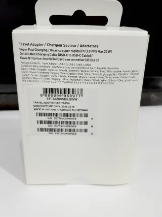 Cargador de 25W original de Samsung para carga rápida, funciona perfectamente con su caja incluida.