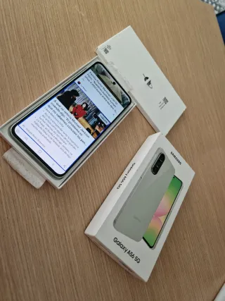 Sólo lo he abierto de la caja para ver cómo es . Dispongo de la factura de compra con 3 años de garantía. 100% original dispone de una gran pantalla muy colorida y la batería aguanta bastante más de veinticuatro horas. Los bordes son de metal aluminio no es plástico se nota un móvil fuerte y robusto. Te regalo el cargador. móvil Samsung A56 con gran capacidad de almacenamiento. - Color: Blanco - Capacidad: 256GB