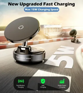 Vendo Este Soporte De Carga Rapida Inalámbrico Magnético Con Ventosa Al Vacío, Ajustable y Plegable, Giro 360º Grados Nuevo a Estrenar. ✅Compatible Con IPhone 17,16,15,14,13,12 ✅Compatible Con Samsung y Dispositivos Android ⚠️PARA LOS MÓVILES QUE NO SON MAGSAFE HAY QUE PONER EL ANILLO METÁLICO (INCLUIDO)⚠️