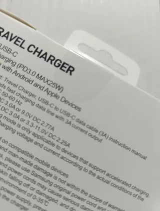 Adaptador de corriente Samsung de 25W con tecnología Power Delivery (PD). Incluye un cable USB-C a USB-C de 3A. CARGADOR SAMSUNG 25W CARGA RÁPIDA ORIGINAL CON UN METRO DE CABLE DE TIPOC A TIPOC ORIGINAL 3A EN SU CAJA PRECINTADA NUEVO A ESTRENAR VER FOTOS. PRECIO NO NEGOCIABL OFERTA 💫 💫 💫 💫 💫 8EUROS - Carga rápida. - Diseño compacto. - Cable de 1 metro.