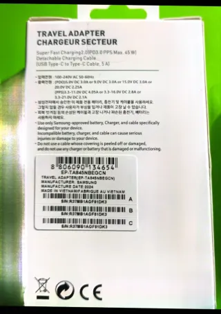 CARGADOR SAMSUNG DE 45WCARGA RÁPIDA ORIGINAL EN SU CAJA PRECINTADA NUEVO A ESTRENAR VER FOTOS SIN CABLE - Carga rápida. - Diseño compacto y portátil. - Incluye el cargador. - No incluye cable.