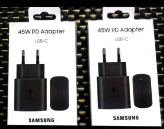 Dos cargadores Samsung de 45W con tecnología de carga rápida.PD LOTE DE DOS CARGADORES SAMSUNG DE 45W CARGA RÁPIDA ORIGINALES EN SU CAJA PRECINTADA NUEVOS ESTRENAR VER FOTOS SIN CABLE - Modelo: 45W PD Adapter - Conexión: USB-C - Marca: Samsung