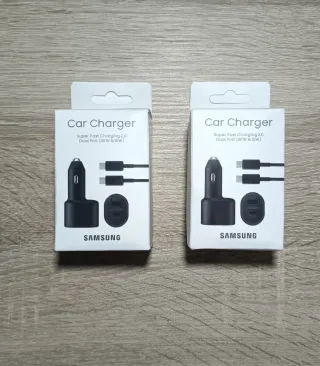 LOTE DE DOS CARGADORES SAMSUNG ORIGINALES DE COCHE CON DOS PUERTOS UNO DE 45W CARGA RÁPIDA Y OTRO DE 15W USB DE CARGA RÁPIDA CON 1MCABLE DE CABLE DE TIPOC A TIPOC DE 5A ORIGINALES EN SU CAJA ORIGINAL NUEVO A ESTRENAR VER FOTOS - Carga Súper Rápida 2.0. - Doble puerto (45W y 15W). - Incluye cables USB-C.