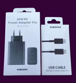 NUEVO PRECINTADO CARGADOR ULTRA RÁPIDO ORIGINAL SAMSUNG 65W 3 PUERTOS CON 1 PUERTO TIPO C 65W 1 PUERTO TIPO C 25W 1 PUERTO TIPO USB 15W ADAPTADOR DE CARGA SÚPER RÁPIDA+CABLE TIPO C. AUN QUE LA MARCA ES DE SAMSUNG ES COMPATIBLE CON CUALQUIERA DISPOSITIVOS MOVILES Y TAMBIEN ORDENADORES NO NEGOCIABLE. CARGADOR SAMSUNG ORIGINAL 65W CON 3 PUORTOS ✅Entrega a mano o Envio super rapida