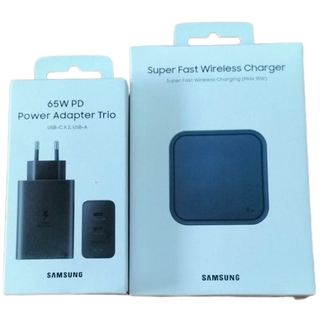 ✅Nuevo Precintado Sellados ❤️1) Cargador Samsung Original Trio 65W EP-6530 con 3 puuertos. CARGADOR ULTRA RÁPIDO ORIGINAL SAMSUNG 65W 3 PUERTOS CON 1 PUERTO TIPO C 65W 1 PUERTO TIPO C 25W 1 PUERTO TIPO USB 15W ❤️2) Cargador Inalambrico Samsung Original con cable 1m Samsung Super Fast Wireless Charger: Ofrece una carga rápida y eficiente. Este modelo utiliza la tecnología "Fast Charge" de Samsung para cargar el dispositivo más rápidamente. Envio Rapida