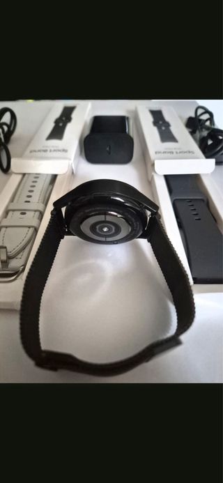 Se vende reloj Samsung Galaxy Watch 6 Classic en color negro. Incluye cargador y correa. Galaxy Watch 6 Classic prácticamente nuevos a estrenar . no sé han usado ni 15 días .(le restan más de 2 años de garantía aún) Las correas originales nunca se han usado . También se regalan las correas plateadas que son las que se usaron. no tienen caja porque se tiró,solo está la caja de las correas ORIGINALES a estrenar .